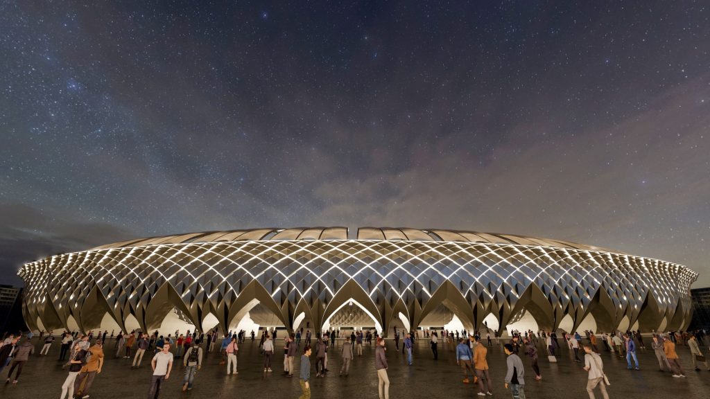 در طراحی استادیوم به عنوان یک دفتر معماری، ابتدا زمینه‌ای گسترده از جوانب معماری، فنی، اجتماعی و فرهنگی مورد بررسی قرار می‌گیرد. این شامل مطالعه نیازها و انتظارات مخاطبان، نیازهای ورزشی، فرهنگی و تفریحی جامعه می‌شود. سپس، با بررسی نمونه‌های موردی استادیوم‌های برجسته و معروف، از نظر معماری، فنی و عملکردی، الگوها و ابزارهای بهینه برای طراحی مورد بررسی قرار می‌گیرند. تحلیل‌های دقیق در مورد نقش جهانی استادیوم‌ها نیز بخش مهمی از فرآیند طراحی را تشکیل می‌دهند. با توجه به اینکه استادیوم‌ها معمولاً به‌عنوان نمادهای فرهنگی و ورزشی یک کشور یا شهر شناخته می‌شوند، نقش آنها در تشویق به ورزش، تفریح، و تعاملات بین‌المللی بسیار مهم است. بنابراین، در نتیجه تحلیل‌های استادیوم نقش جهانی، طراحان معماری می‌توانند به بهبود فرآیند طراحی و ایجاد استادیوم‌هایی با تأثیرات مثبت و گسترده‌تر در جوامع بپردازند. در طراحی استادیوم به عنوان یک دفتر معماری، مادر طراحی فرایند را رعایت کرده و از اصول معماری پایه‌ای برای شکل‌دهی به فضاها و ساختارها استفاده کردیم. با استفاده از پوسته‌های معماری، تلاش کردیم تا جریان‌ها و حرکت‌ها را در فضاها به صورت شاخص و روان نماییم، همچنین از نور به عنوان یک عامل مهم برای جهت‌دهی و ایجاد اثرات تجربی بر فضاها استفاده کردیم. استفاده از نمادها و نشانه‌ها نیز جزء این فرآیند بوده است؛ با استفاده از نمادها، علاوه بر ایجاد ارتباطات فرهنگی و تاریخی، به تأکید بر ارزش‌های مورد نظر و هویت مکانیکی استادیوم‌ها پرداخته‌ایم. این اصول و الگوها با استفاده از پوسته‌های الگوریتمی و استفاده از تکنولوژی‌های معماری مدرن در طراحی استادیوم‌ها به کار گرفته شده و باعث شده‌اند تا مجموعه‌ای زیبا و عملکردی برای جامعه و جهان ساخته شود که همزمان با مسائل معماری مورد نظر، نیازها و انتظارات مخاطبان را نیز در نظر گرفته است.